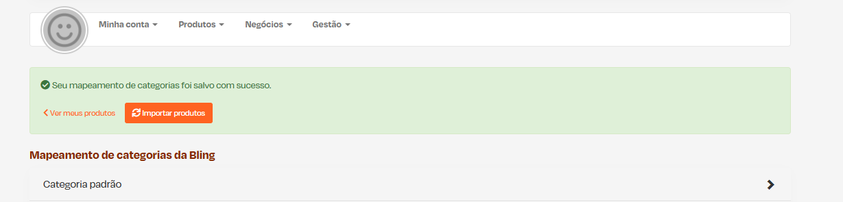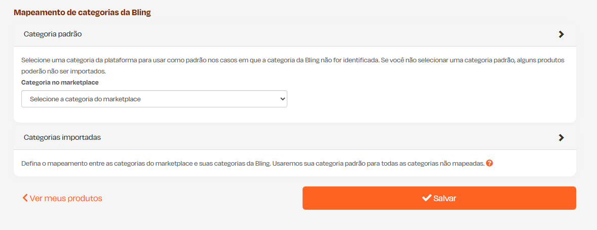 Caso não exista uma categoria equivalente ou opte por não mapear alguma das categorias, ao importar produtos desta Categoria da Bling eles serão cadastrados na categoria padrão selecionada.