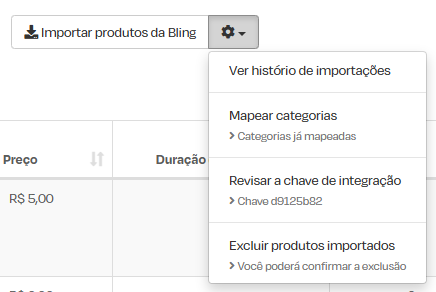 Para visualizar estas opções, acesse Minha Loja > Produtos